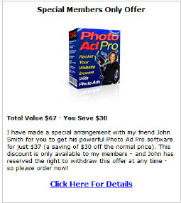 A “web page ad” is a complete ad (including images and HTML formatted text) that affiliates can add to their own web pages, by pasting a single line of code into their page.